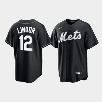 Men’s New York Mets #12 Francisco Lindor 2022 Black Cool Base Stitched Baseball Jersey