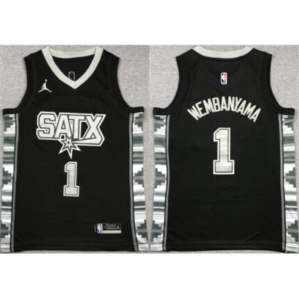 Youth San Antonio Spurs #1 Victor Wembanyama Black Statement Edition Stitched Jersey
