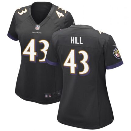 Women’s Baltimore Ravens #43 Justice Hill Black Football Jersey(Run Small)
