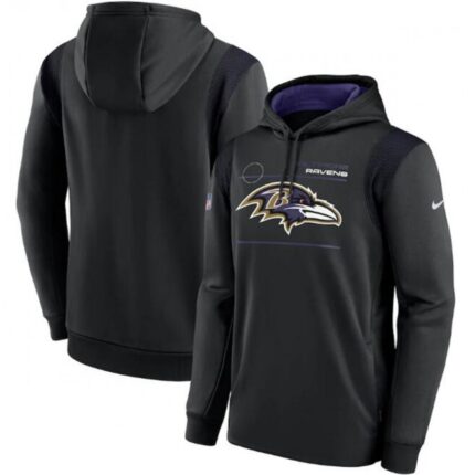 Men’s Baltimore Ravens 2021 Black Sideline Logo Performance Pullover Hoodie