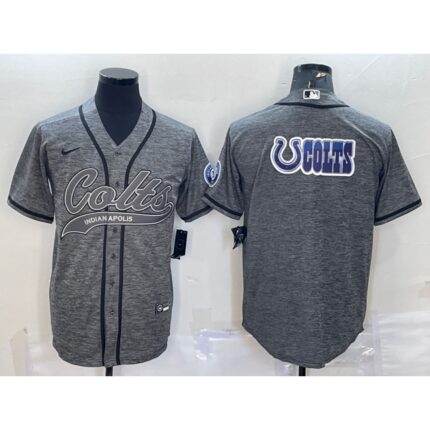 Men’s Indianapolis Colts Grey Team Big Logo With Patch Cool Base Stitched Baseball Jersey