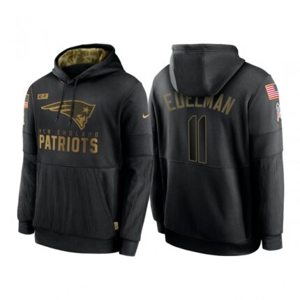 Men’s New England Patriots #11 Julian Edelman 2020 Black Salute to Service Sideline Performance Pullover Hoodie