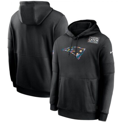 Men’s New England Patriots 2020 Black Crucial Catch Sideline Performance Pullover Hoodie