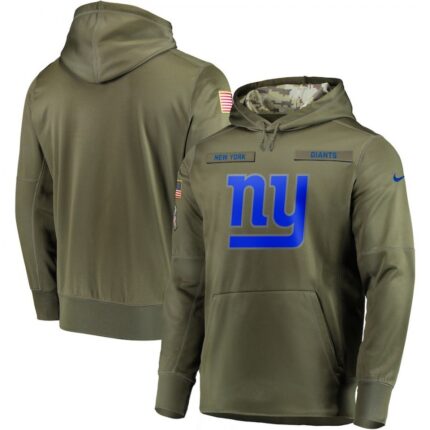 Men’s New York Giants 2018 Olive Salute to Service Sideline Therma Performance Pullover Stitched NFL Hoodie