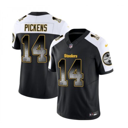Men’s Pittsburgh Steelers #14 George Pickens Black/White 2023 F.U.S.E. Smoke Vapor Untouchable Limited Stitched Jersey