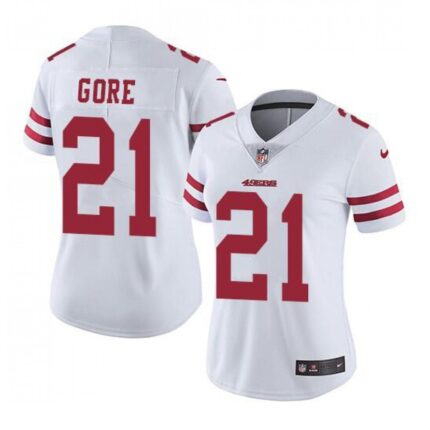 Women’s San Francisco 49ers #21 Frank Gore White Stitched Jersey(Run Small)