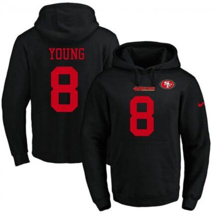 Nike 49ers #8 Steve Young Black Name & Number Pullover NFL Hoodie