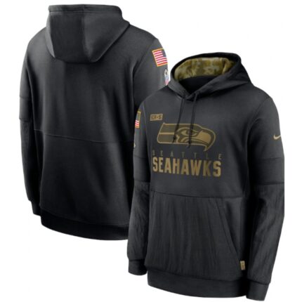 Men’s Seattle Seahawks 2020 Black Salute to Service Sideline Performance Pullover Hoodie