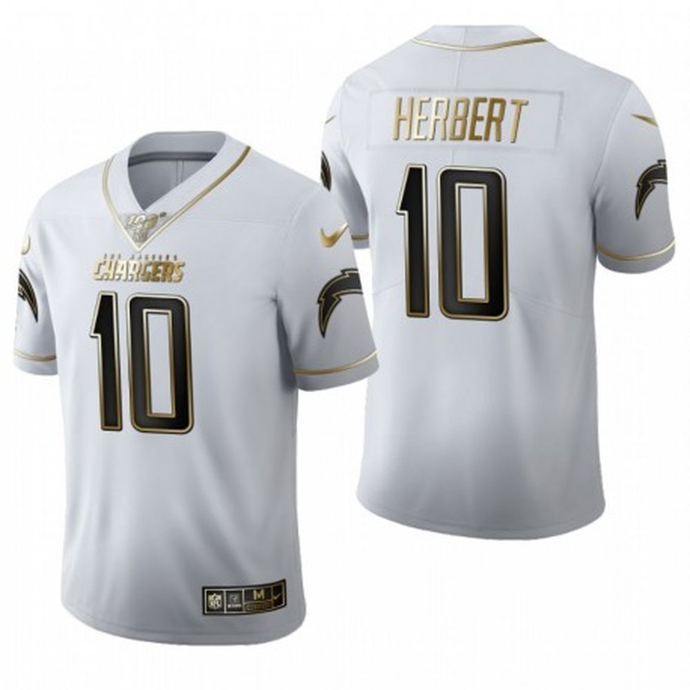 Men’s Los Angeles Chargers #10 Justin Herbert Golden/White Limited Stitched Football Jersey