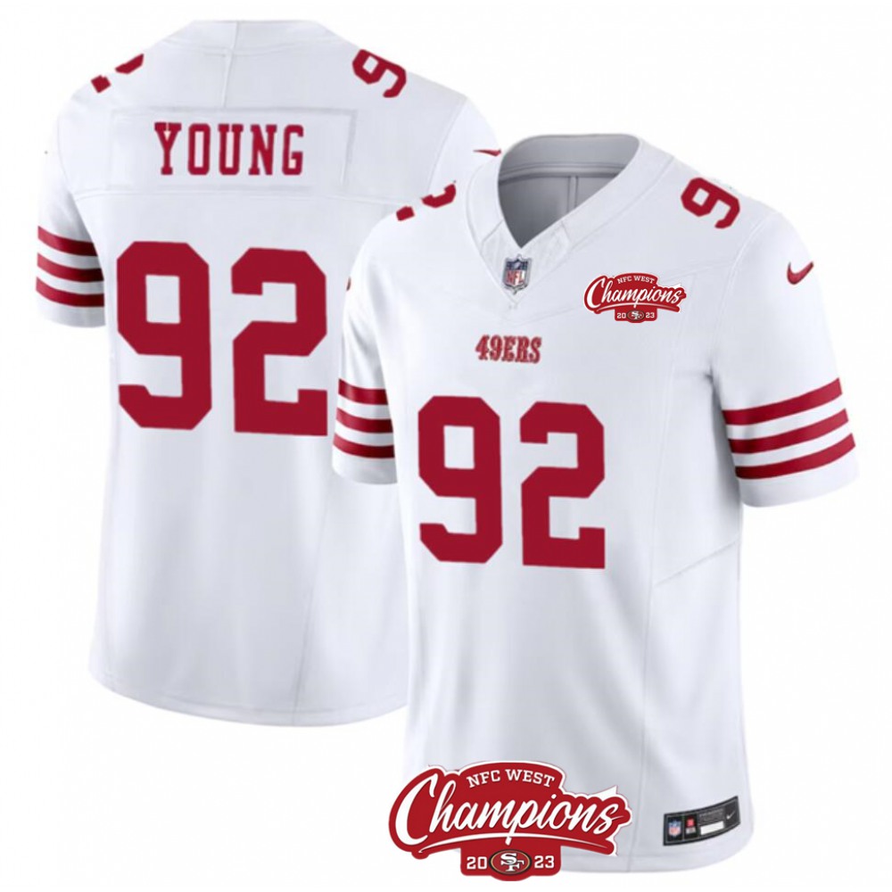 Men’s San Francisco 49ers #92 Chase Young White 2023 F.U.S.E. NFC West Champions Patch Stitched Football Jersey