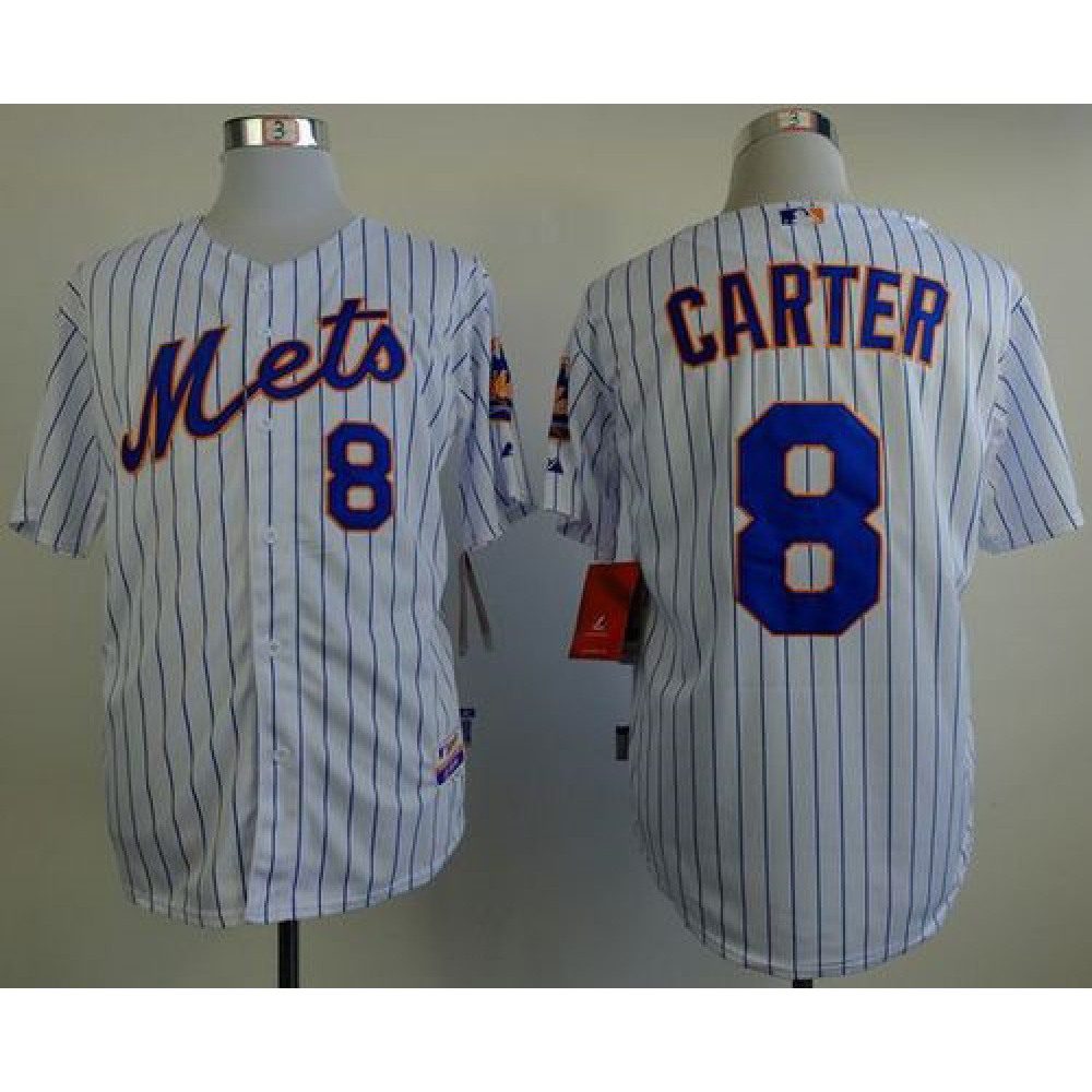 Mets #8 Gary Carter White(Blue Strip) Home Cool Base Stitched MLB Jersey quantity