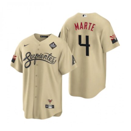 Men’s Arizona Diamondbacks #4 Ketel Marte Cream 2023 World Series City Connect Cool Base Stitched Baseball Jersey