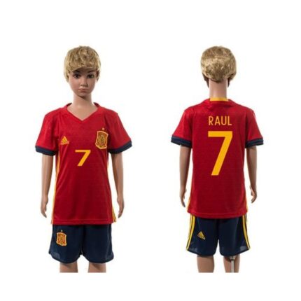 Spain #7 Raul Red Home Kid Soccer Country Jersey