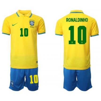 Men’s Brazil #10 Ronaldinho Yellow Home Soccer Jersey Suit
