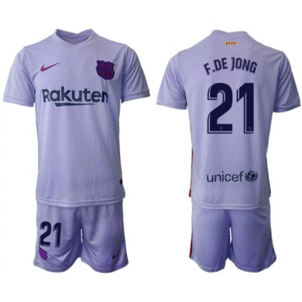 Men’s Barcelona #21 Frenkie de Jong 2021/22 Grey Away Soccer Jersey Suit