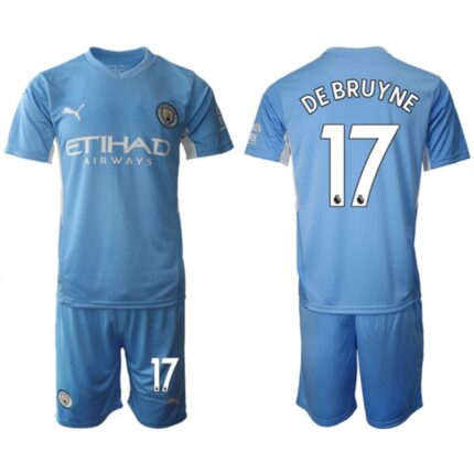 Men’s Manchester City #17 Kevin De Bruyne 2021/22 Blue Home Soccer Jersey Suit