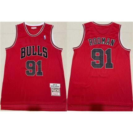 Men’s Chicago Bulls #91 Dennis Rodman Red 1997-98 Throwback Stitched Jersey