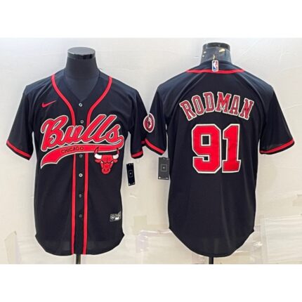 Men’s Chicago Bulls #91 Dennis Rodman Black Cool Base Stitched Baseball Jersey