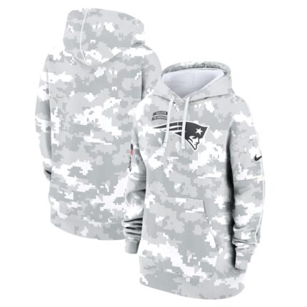 Women’s New England Patriots Nike Arctic Camo 2024 Salute To Service Club Fleece Pullover Hoodie