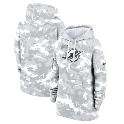 Women’s Miami Dolphins Nike Arctic Camo 2024 Salute To Service Club Fleece Pullover Hoodie