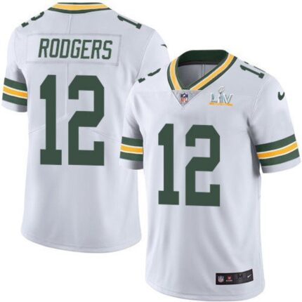 Men’s Green Bay Packers #12 Aaron Rodgers White 2021 Super Bowl LV Stitched NFL Jersey