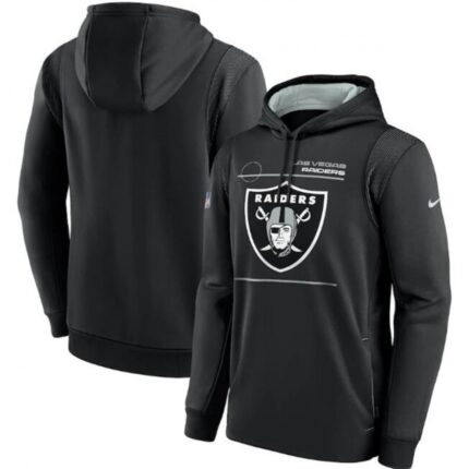 Men’s Las Vegas Raiders 2021 Black Sideline Logo Performance Pullover Hoodie