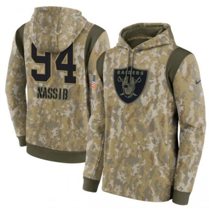 Men’s Las Vegas Raiders #94 Carl Nassib Camo 2021 Salute To Service Therma Performance Pullover Hoodie