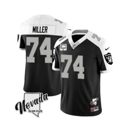 Men’s Las Vegas Raiders #74 Kolton Miller Black/White 2023 F.U.S.E Nevada Silver Stat With 1-Star C patch Stitched Football Jersey