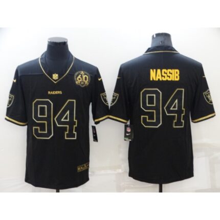 Men’s Las Vegas Raiders #94 Carl Nassib Black/Gold With 60th Anniversary Patch Vapor Limited Stitched Jersey