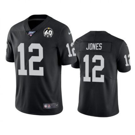 Men’s Oakland Raiders #12 Zay Jones Black 100th Season with 60 Patch Vapor Limited Stitched NFL Jersey