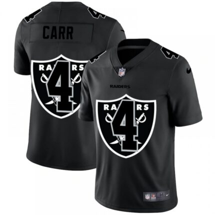Men’s Las Vegas Raiders #4 Derek Carr 2020 Black Shadow Logo Limited Stitched Jersey