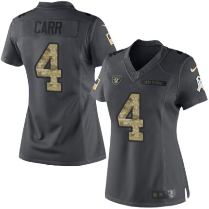 Nike Raiders #4 Derek Carr Black Women’s Stitched NFL Limited 2016 Salute to Service Jersey