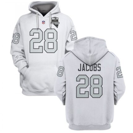 Men’s Las Vegas Raiders #28 Josh Jacobs 2021 Inaugural Patch White Pullover Hoodie
