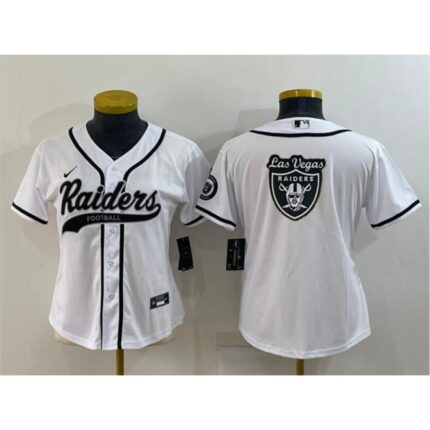 Youth Las Vegas Raiders White Team Big Logo With Patch Cool Base Stitched Baseball Jersey