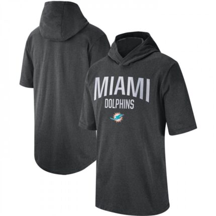 Men’s Miami Dolphins Heathered Charcoal Sideline Training Hoodie Performance T-Shirt