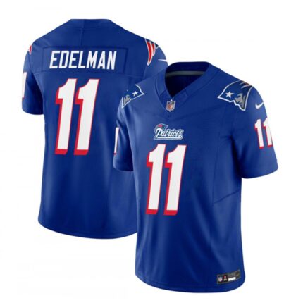Men’s New England Patriots #11 Julian Edelman Blue 2023 F.U.S.E. Throwback Limited Stitched Football Jersey