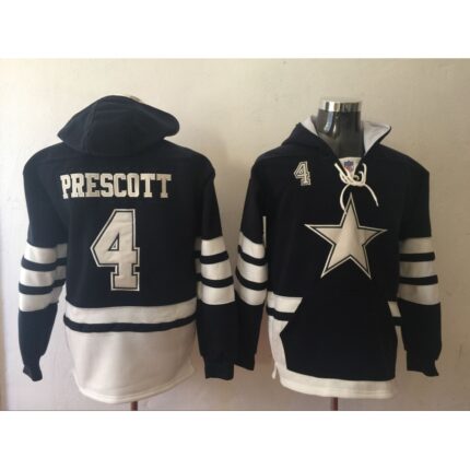 Men’s Dallas Cowboys #4 Dak Prescott Navy Blue All Stitched NFL Hoodie Sweatshirt