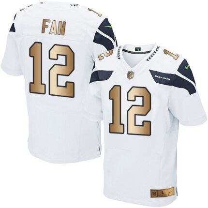 Nike Seahawks #12 Fan White Men’s Stitched NFL Elite Gold Jersey