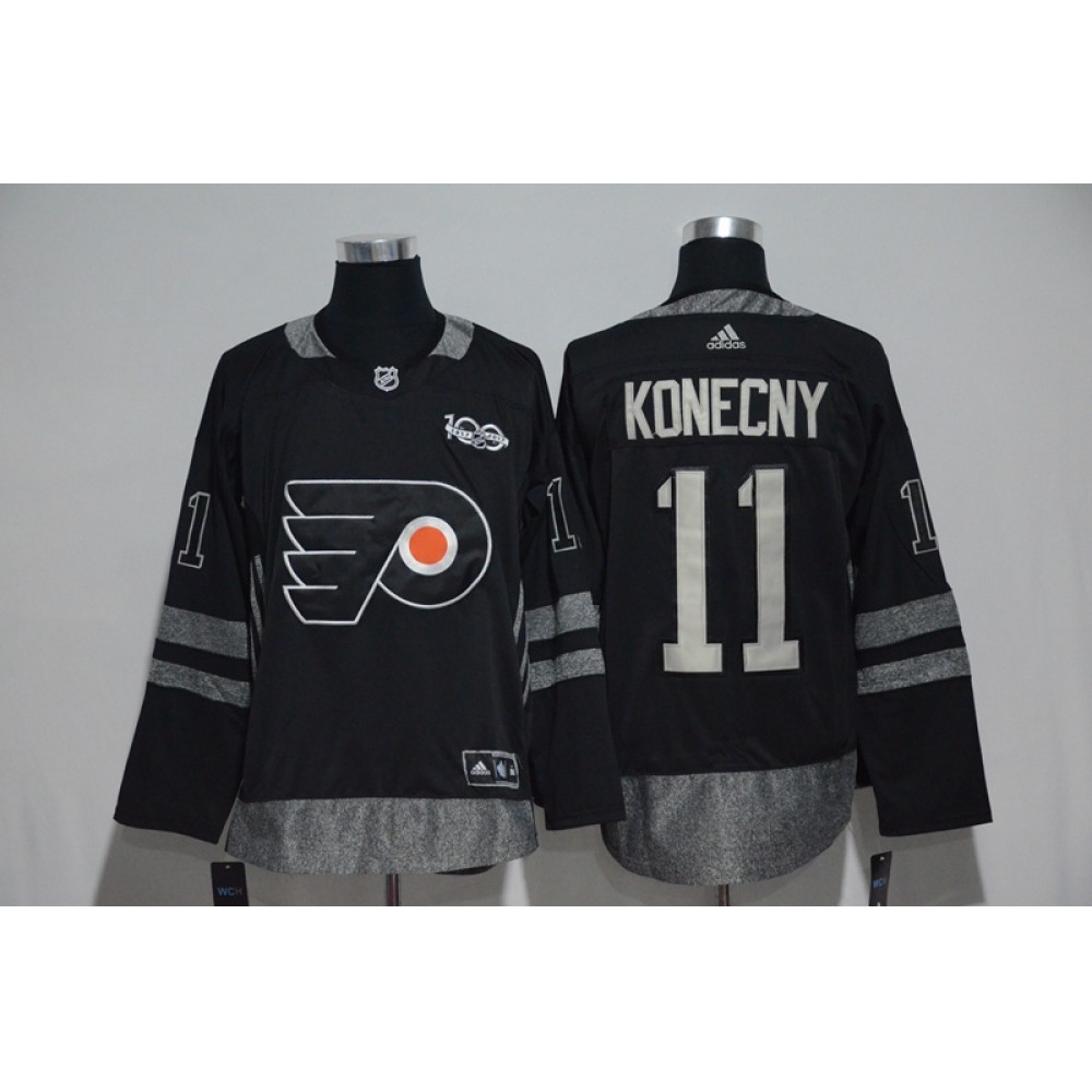 Philadelphia Flyers #11 Travis Konecny Black Men’s 1917-2017 100th Anniversary Stitched NHL Jersey
