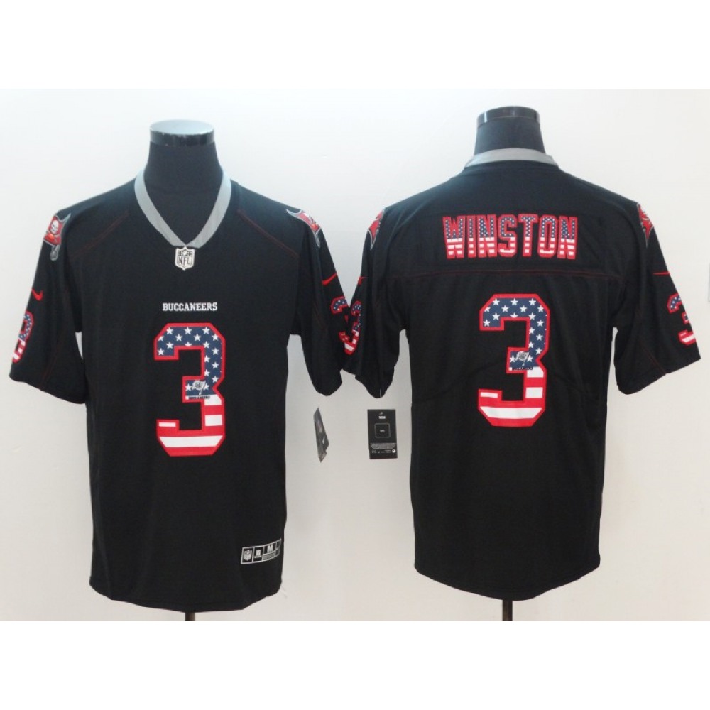 Men's Tampa Bay Buccaneers #3 Jameis Winston Black 2018 USA Flag Fashion Color Rush NFL Limited Jersey quantity