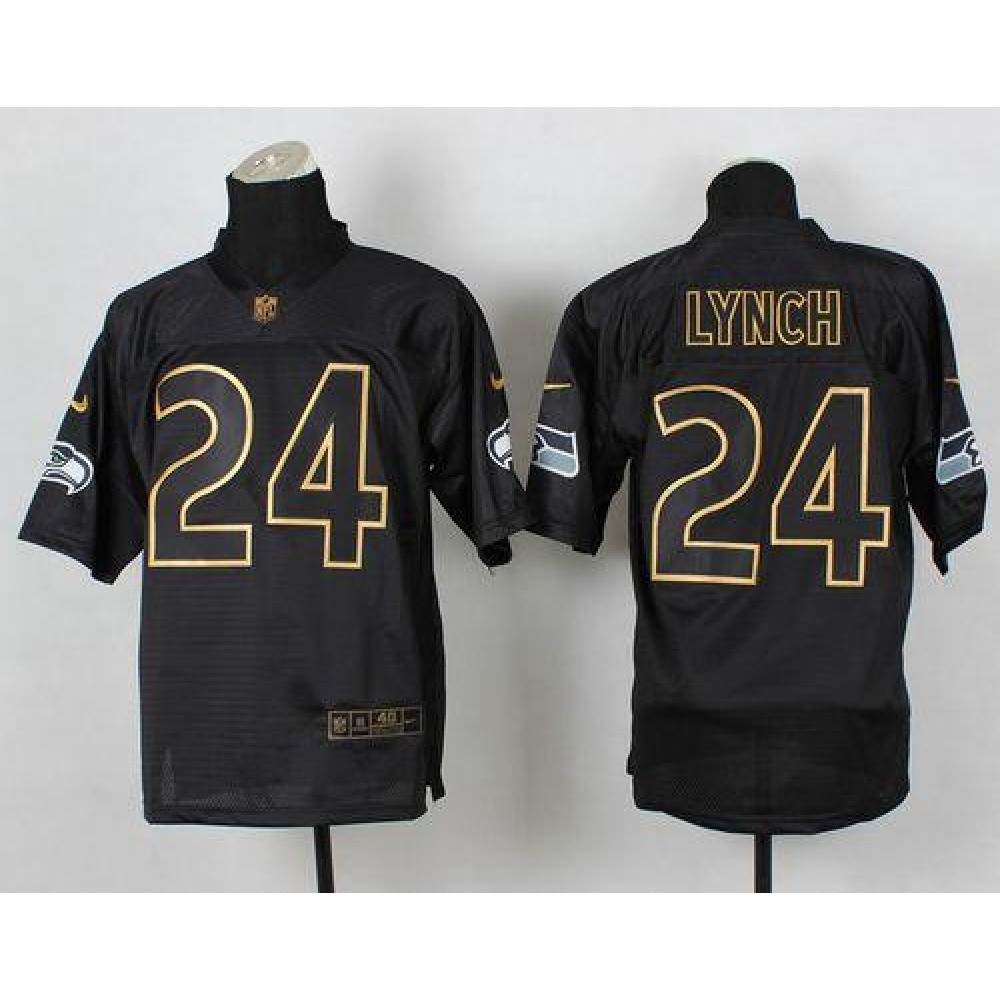 Nike Seahawks #24 Marshawn Lynch Black Men's Stitched NFL Elite Pro Line Gold Collection Jersey